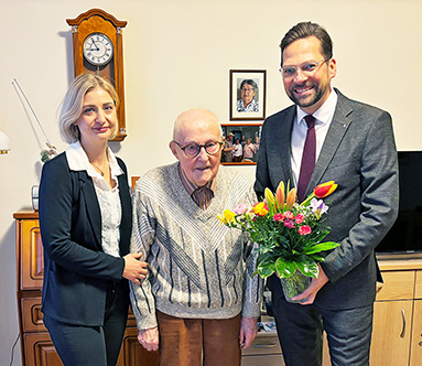 Stefanie Böhnke, Leiterin der Seniorenresidenz; Heinz Göthel, Hundertjähriger und